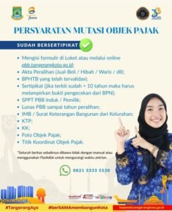 Pengajuan mutasi dapat dilakukan langsung di loket pelayanan Bapenda atau melalui layanan daring di laman pbb.tangerangkota.go.id.