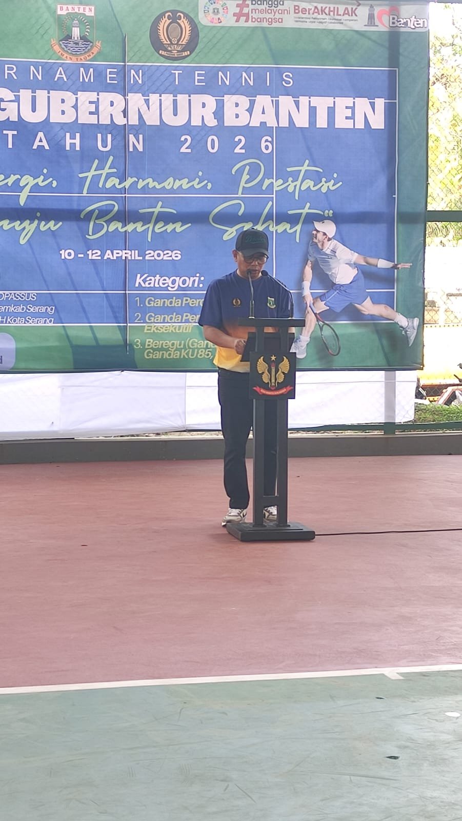 Banten,-Dinas Kepemudaan dan Olahraga Provinsi Banten menggelar Turnamen Tenis Piala Gubernur Banten Tahun 2026 yang berlangsung selama tiga hari, mulai 10 hingga 12 April 2026. Turnamen ini secara resmi dibuka oleh Andra Soni pada Jumat (10/4/2026) di Stadion Grup I Kopassus Kota Serang dan dihadiri unsur Forkopimda Provinsi Banten.