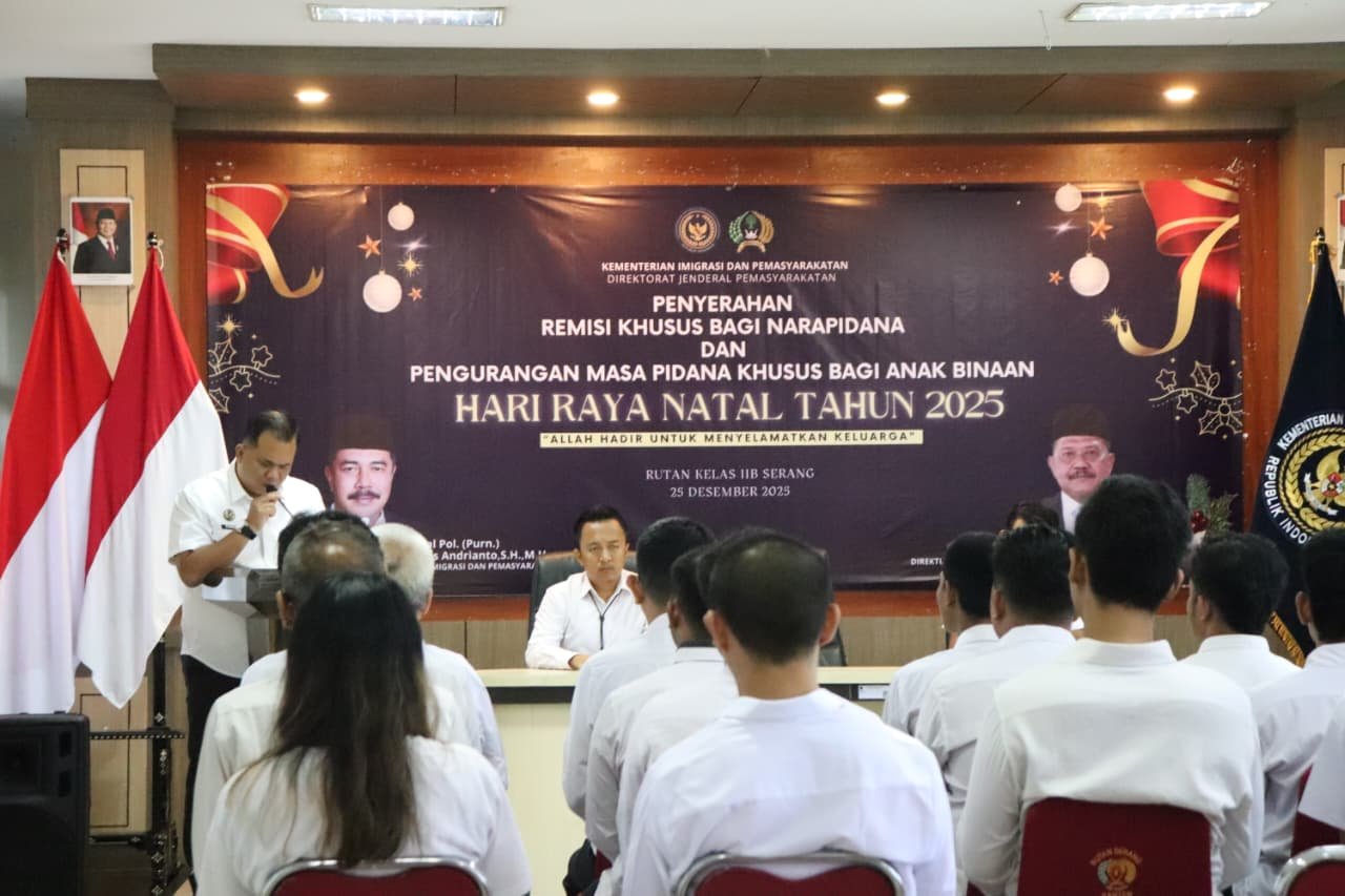 Remisi tersebut diserahkan secara simbolis oleh Kepala Rutan Kelas IIB Serang kepada perwakilan warga binaan pada Kamis (25/12), bertepatan dengan perayaan Natal. Kegiatan berlangsung dengan tertib, khidmat, dan penuh suasana kebersamaan di lingkungan rutan.