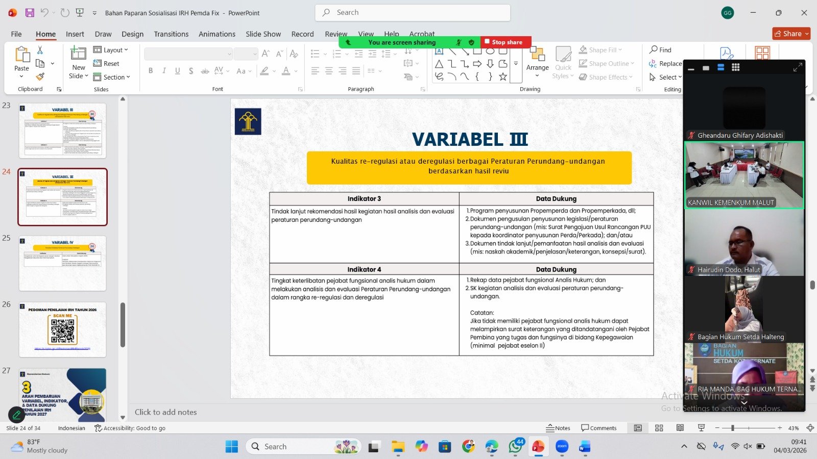 Melalui pendampingan hari kedua ini, Kanwil Kemenkum Malut memperoleh gambaran komprehensif terkait progres kesiapan daerah Zona II sekaligus memperkuat koordinasi dalam memastikan setiap tahapan penilaian IRH Tahun 2026 berjalan sesuai ketentuan dan target yang telah ditetapkan.