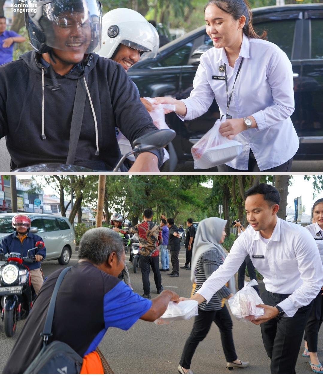 Para pegawai Imigrasi Tangerang turun langsung membagikan paket takjil kepada pengendara roda dua maupun roda empat yang melintas. Kegiatan ini disambut antusias oleh masyarakat yang tengah menjalani aktivitas menjelang waktu berbuka puasa.