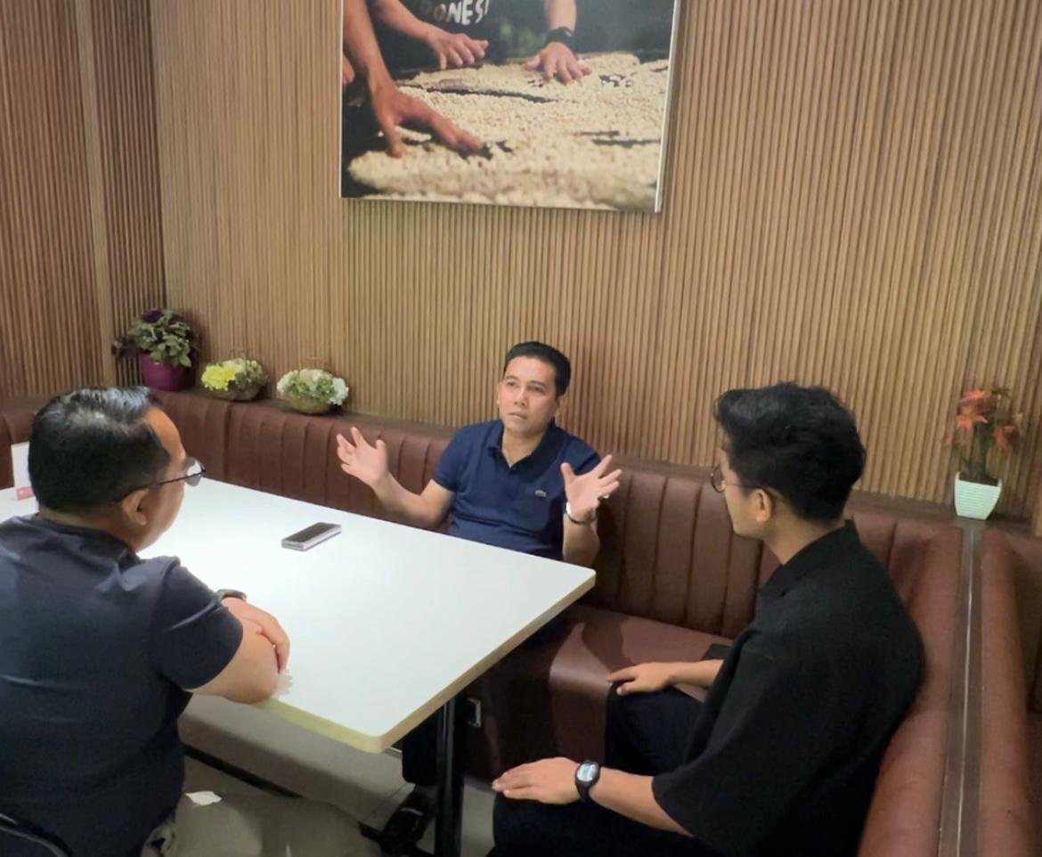 Ternate – Kepala Kantor Wilayah (Kakanwil) Kementerian Hukum (Kemenkum) Maluku Utara (Malut), Budi Argap Situngkir didampingi Kepala Divisi (Kadiv) Pelayanan Hukum, Chusni Thamrin, dan Kepala Bidang Pelayanan Kekayaan Intelektual, Zulfikar Gailea menggelar pertemuan dengan penulis lagu “Stecu”, Farid Egall.