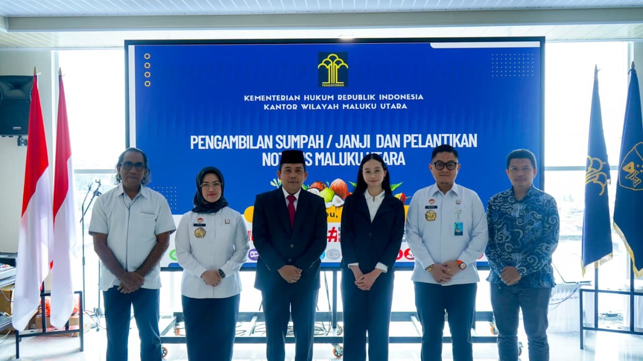 Pelantikan tersebut dipimpin langsung oleh Kepala Kantor Wilayah (Kakanwil) Kemenkum Malut, Budi Argap Situngkir, serta dihadiri oleh jajaran pimpinan tinggi pratama, antara lain Kepala Divisi Pelayanan Hukum (Kadiv Yankum), Rian Arvin, dan Kepala Divisi Peraturan Perundang-undangan dan Pembinaan Hukum (Kadiv P3H), Mia Kusuma Fitriana. Turut hadir pula perwakilan Ikatan Notaris Indonesia (INI) wilayah Maluku Utara, Ansar Basinu, serta unsur Majelis Pengawas Daerah (MPD) Kota Ternate yang diwakili oleh Notaris Rusly, bersama para pejabat struktural dan jajaran pegawai Kanwil.