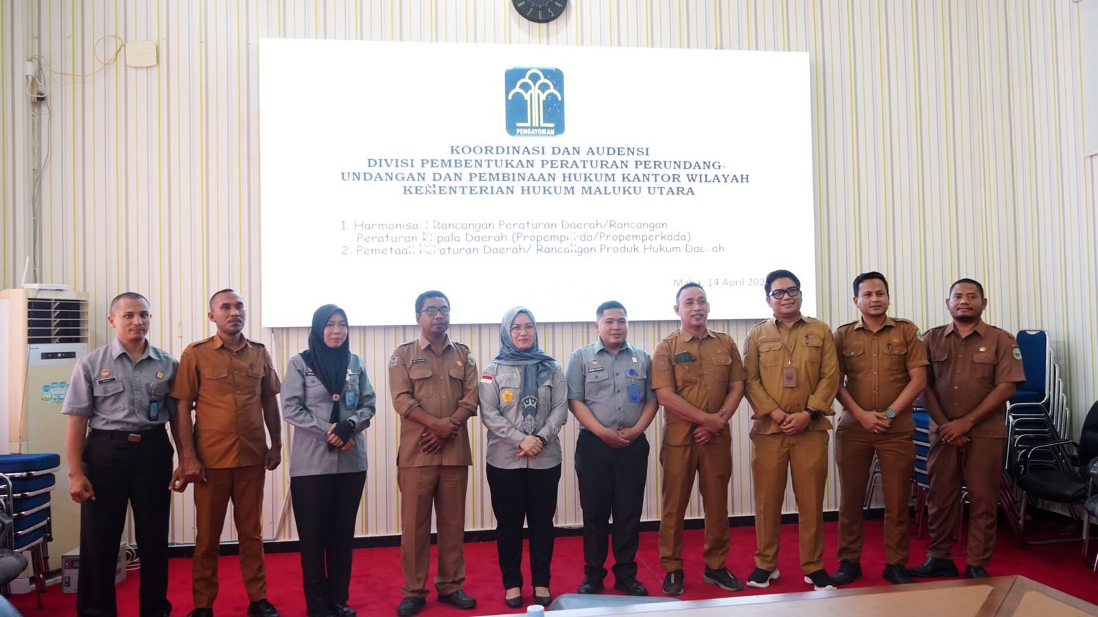 Maba – Kantor Wilayah (Kanwil) Kementerian Hukum (Kemenkum) Maluku Utara (Malut) menggelar rapat koordinasi harmonisasi dan penyusunan naskah akademik, serta pemetaan rancangan produk hukum daerah (ranperda) Kabupaten Halmahera Timur (Haltim) beretmpat di ruang rapat Kantor Bupati Haltim Selasa (14/4/2026).