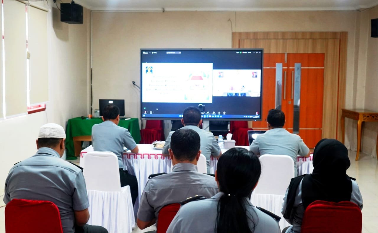 Ternate – Kepala Kantor Wilayah (Kakanwil) Kementerian Hukum (Kemenkum) Maluku Utara (Malut), Budi Argap Situngkir bersama Kepala Divisi Pelayanan Hukum, Chusni Thamrin, Kabid Pelayanan Administrasi Hukum Umum (AHU), M. Kasim Umasangadji dan jajaran mengikuti monev virtual atas progres pendirian koperasi desa/kelurahan merah putih di Indonesia.