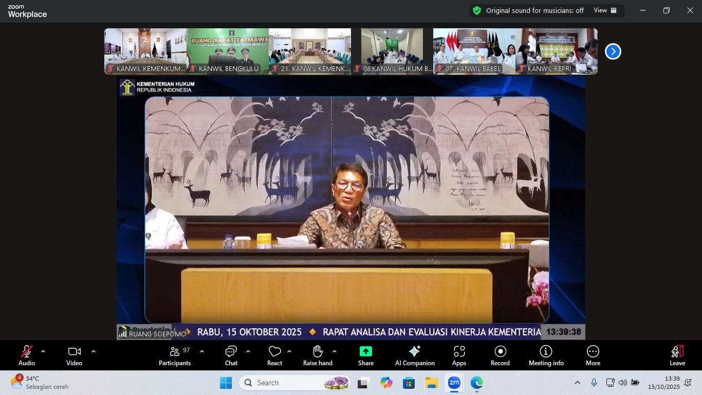 Ternate – Kantor Wilayah (Kanwil) Kementerian Hukum (Kemenkum) Maluku Utara (Malut), mengikuti kegiatan Analisa dan Evaluasi (Anev) Kinerja B10 Tahun 2025 yang diselenggarakan oleh Sekretariat Jenderal Kementerian Hukum RI.