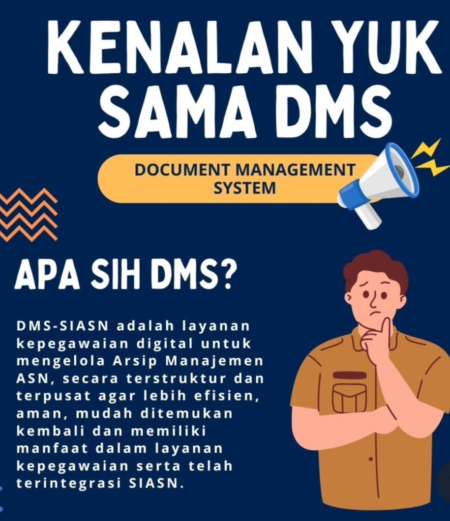 DMS-SIASN merupakan layanan kepegawaian digital untuk mengelola arsip manajemen ASN secara terstruktur dan terpusat. Sistem ini dirancang agar dokumen kepegawaian lebih efisien, aman, mudah ditemukan kembali, serta mendukung kelancaran berbagai layanan kepegawaian.