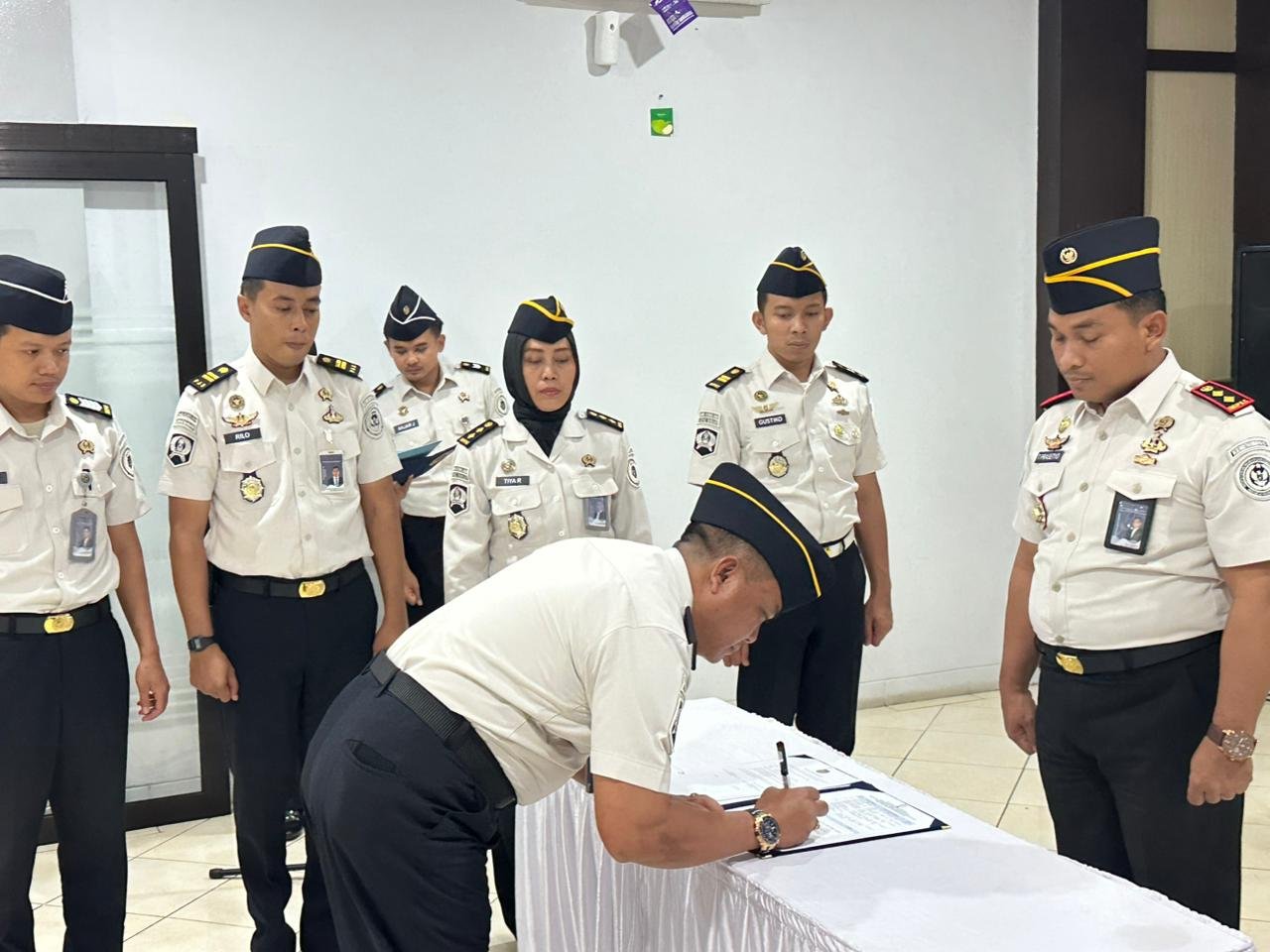 Prosesi penandatanganan diawali oleh Pejabat Struktural Eselon IV yang disaksiakan oleh Kepala Lapas Banjar, selanjutnya penandatanganan Perjanjian Kinerja oleh Pejabat Struktural Eselon V yang diksaksikan oleh Pejabat Struktural Eselon IV.