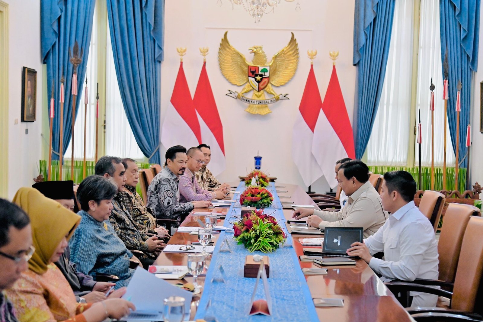 Presiden Prabowo Subianto menerima pimpinan Majelis Permusyawaratan Rakyat (MPR) di Istana Merdeka, Jakarta, Rabu (23/07/2025). Pertemuan ini merupakan bagian dari konsultasi kelembagaan menjelang penyelenggaraan Sidang Tahunan MPR dalam rangka peringatan Hari Kemerdekaan Republik Indonesia.