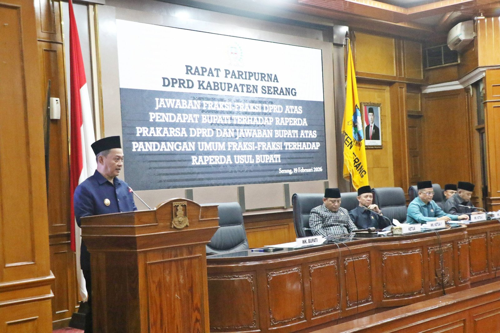 Hal ini disampaikan Wakil Bupati Serang Muhammad Najib Hamas pada Rapat Paripurna DPRD Kabupaten Serang Jawaban Fraksi-Fraksi DPRD atas pendapat bupati terhadap Raperda prakarsa DPRD dan Jawaban Bupati atas Pandangan Umum Fraksi-fraksi terhadap Raperda Usul Bupati di gedung dewan setempat pada Kamis, 19 Februari 2026.