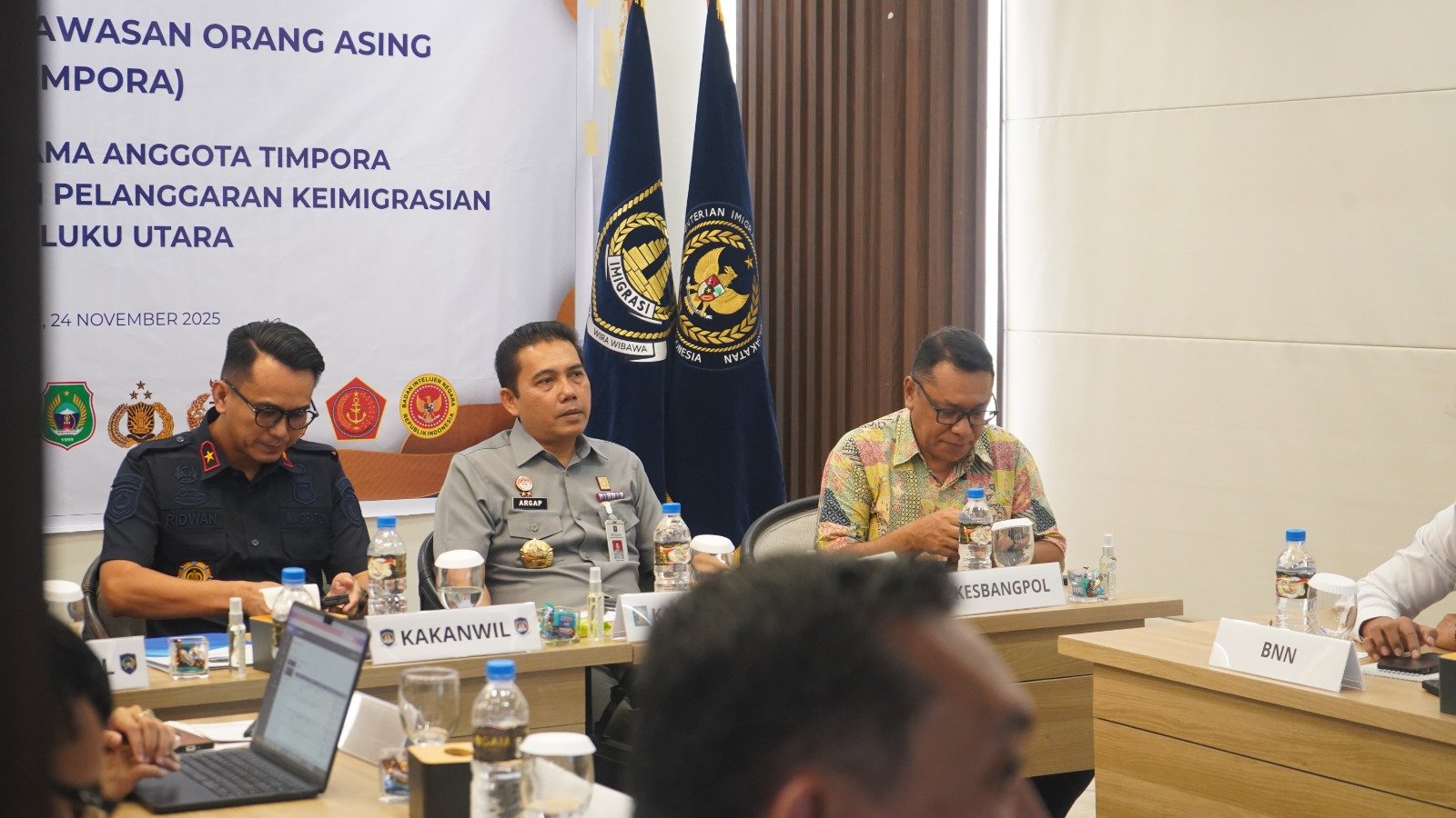 Ternate – Kepala Kantor Wilayah (Kakanwil) Kementerian Hukum (Kemenkum) Maluku Utara (Malut), Budi Argap Situngkir menghadiri rapat Tim Pengawasan Orang Asing (Timpora) yang diselenggarakan oleh Kanwil Direktorat Jenderal (Ditjen) Imigrasi Malut, yang berlangsung di Hotel Gaiya, Senin (24/11/2025).