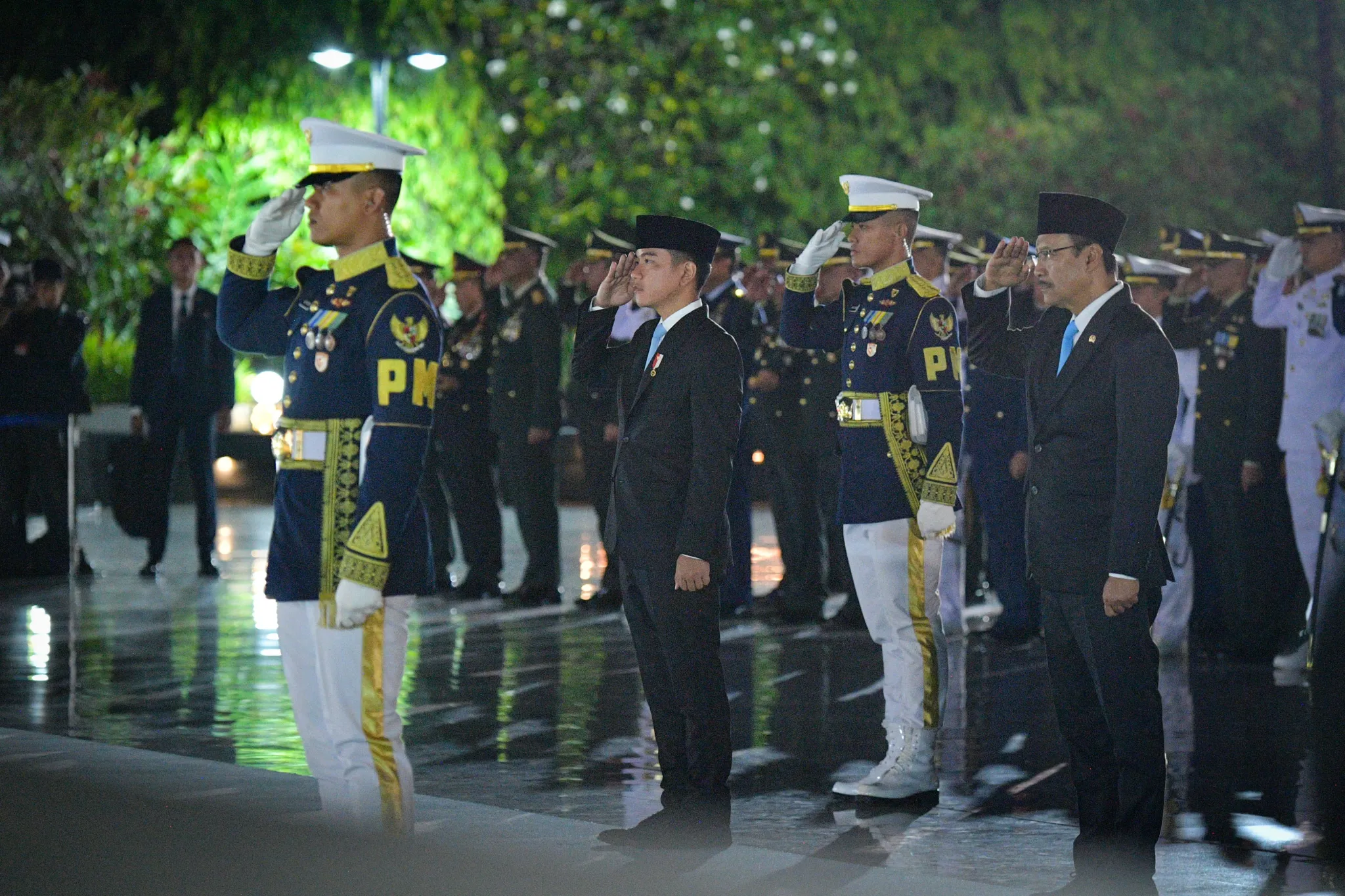 Wakil Presiden (Wapres) Gibran Rakabuming mendampingi Presiden Prabowo Subianto dalam Upacara Ziarah Nasional dan Renungan Suci Peringatan Hari Pahlawan 2025, yang berlangsung khidmat di Taman Makam Pahlawan Nasional Kalibata, Jakarta Selatan, Senin (10/11/2025) pukul 00.00 WIB.